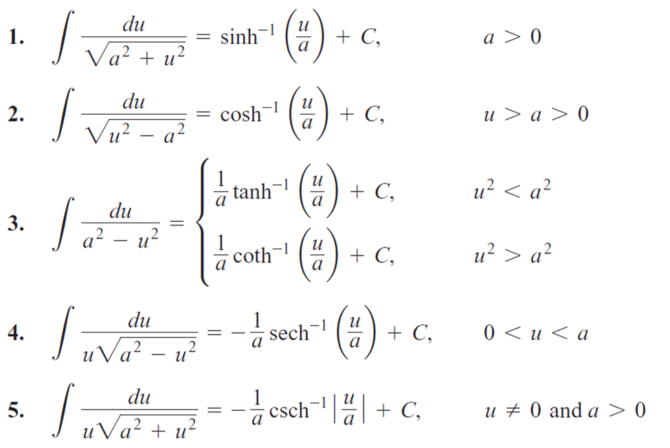 Al igual que las funciones trigonométricas regulares, las funciones hiperbólicas también tienen función inversa. Su convención de nombres es similar a la trigonométrica, ya que siguen los mismos símbolos y estilo de nomenclatura. Sus derivados son los siguientes: